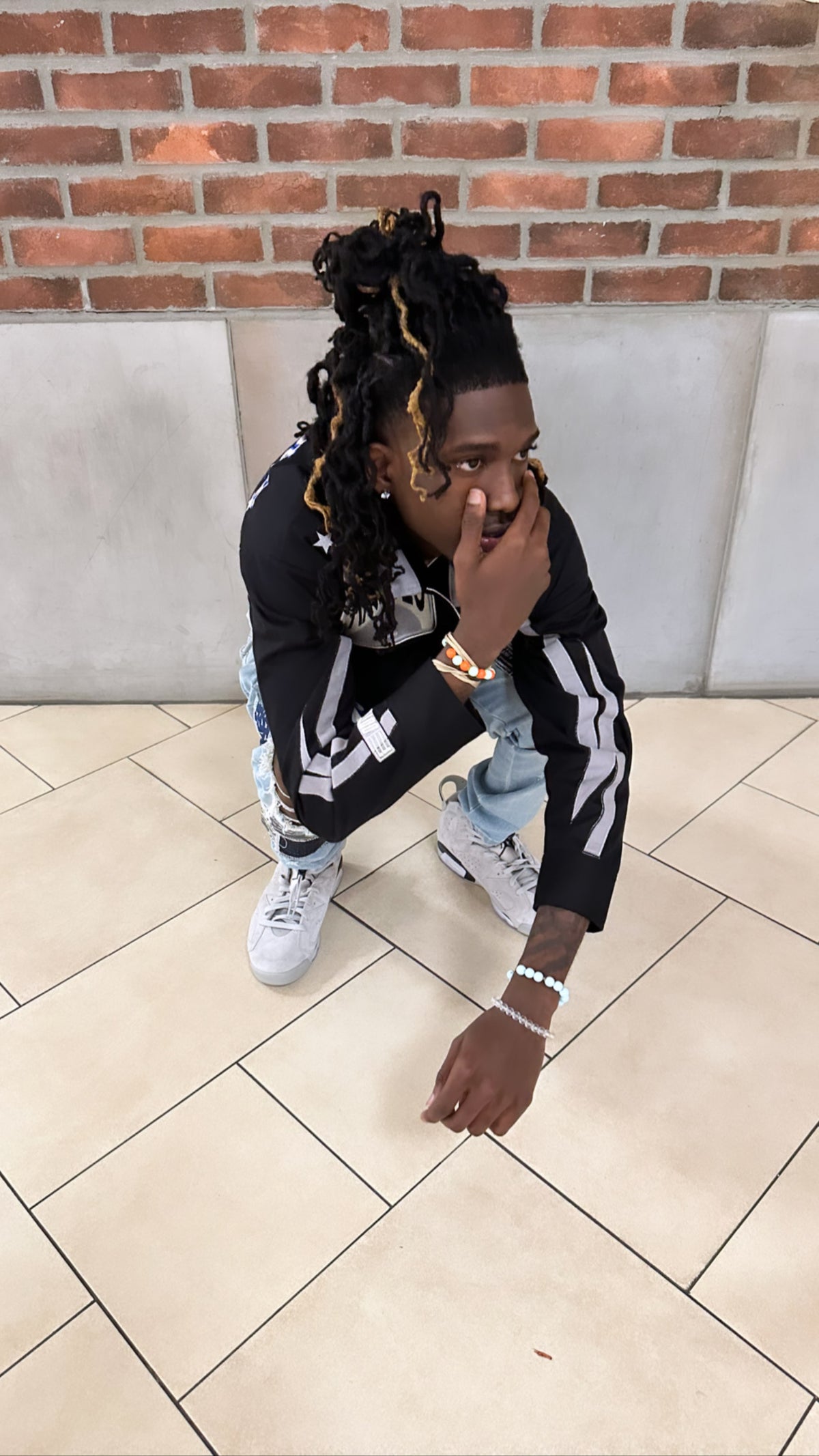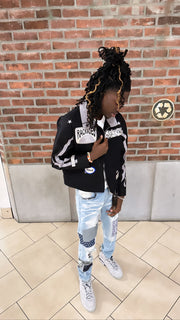 Fits a lil snug go up a size for a more looser fit ! SHIPPING: premade 1-3 days shipping! Black jacket with hint of grey DRY CLEAN ONLY